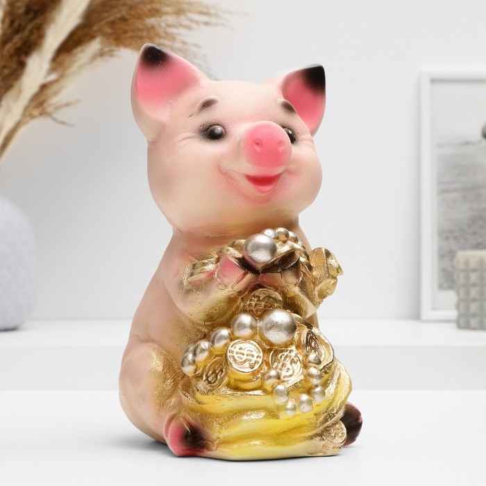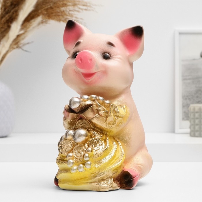 Копилка "Поросенок большой с мешком" 17х14х24см МИКС