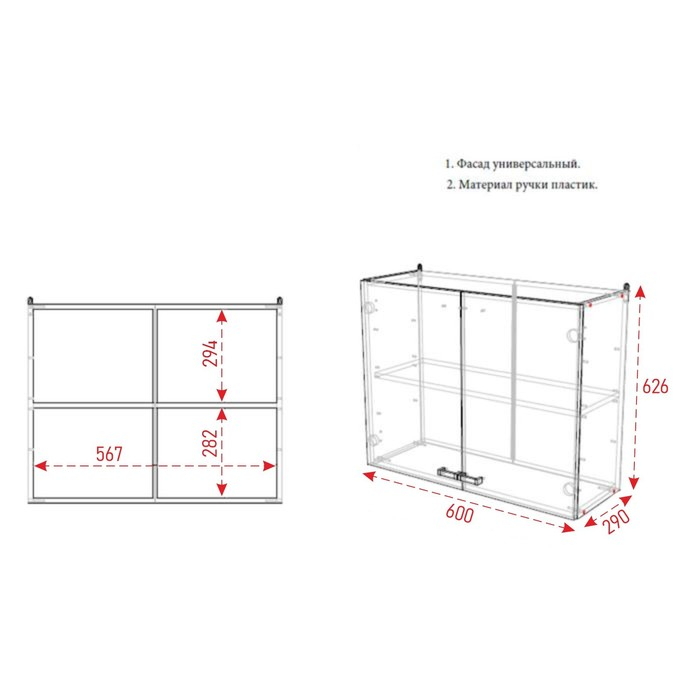 Шкаф навесной, 600 × 626 × 290 Ясень шимо темный/Ясень шимо светлый