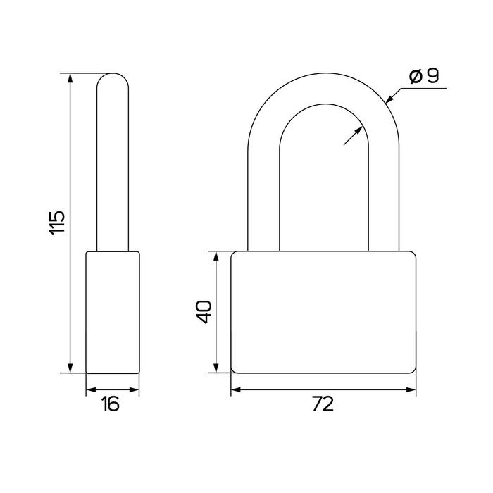 Замок навесной, тип 6, 80 мм, длинная дужка