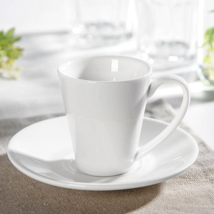 Кофейная пара фарфоровая Wilmax, 2 предмета: кружка 110 мл, блюдце d=13,2 см, цвет белый