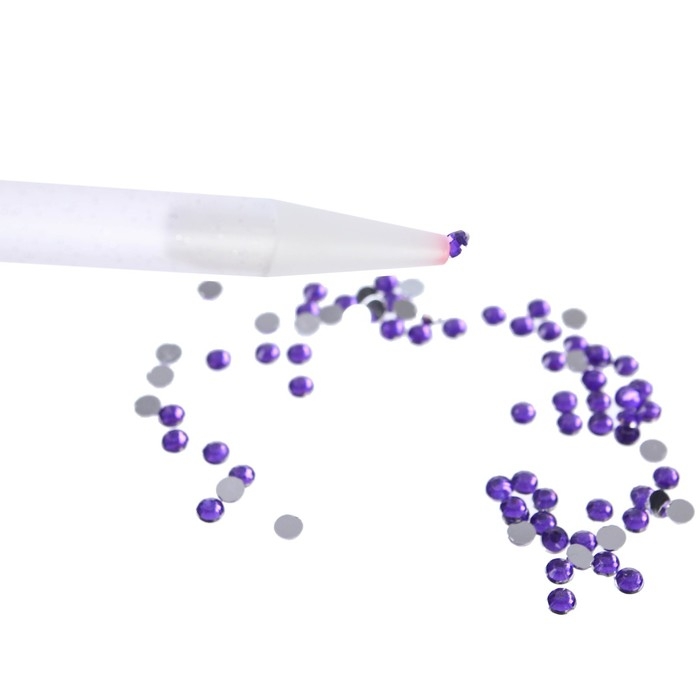 Снимите защитную плёнку с клеевой подушечки. Окуните в неё карандаш для алмазной вышивки таким образом, чтобы клей попал внутрь стержня. Он поможет вам с лёгкостью перенести стразы из поддона на картинку.