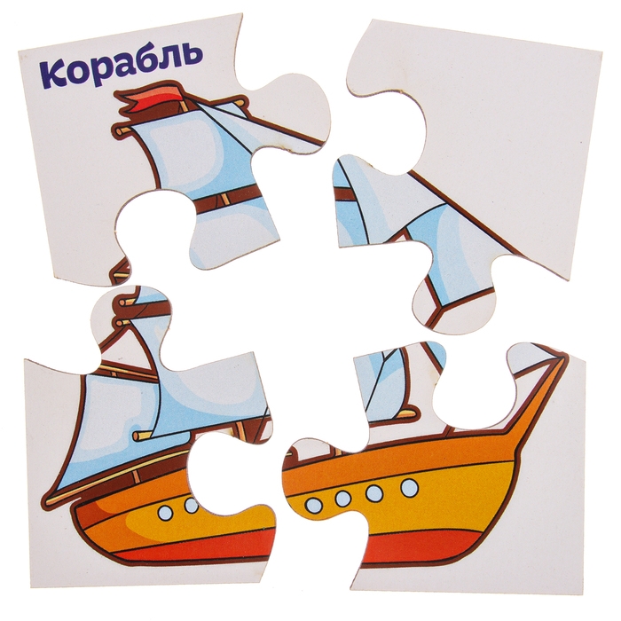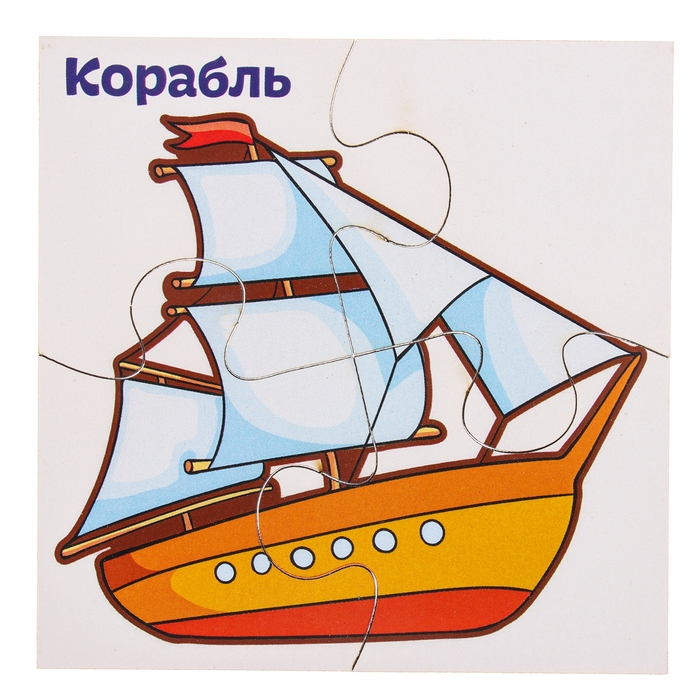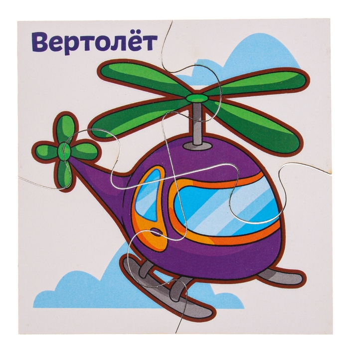 Яркий пазл подойдёт для самых маленьких деток, каждый их них состоит из четырёх элементов. Насыщенные цвета потренируют зрительное восприятие крохи. Расскажите ребёнку о различных транспортных средствах — это поможет развить кругозор малыша.
