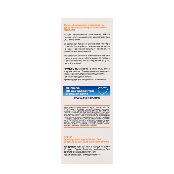 Крем-флюид для лица и зоны декольте Биокон SPF-35, туба, 75 мл