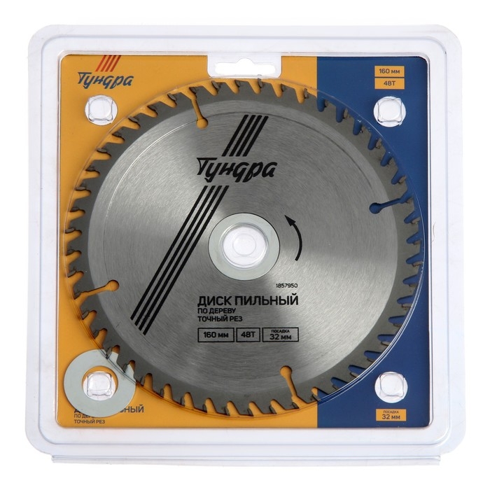 Диск пильный по дереву ТУНДРА, точный рез, 160 х 32 мм (кольца на 22,20,16), 48 зубьев