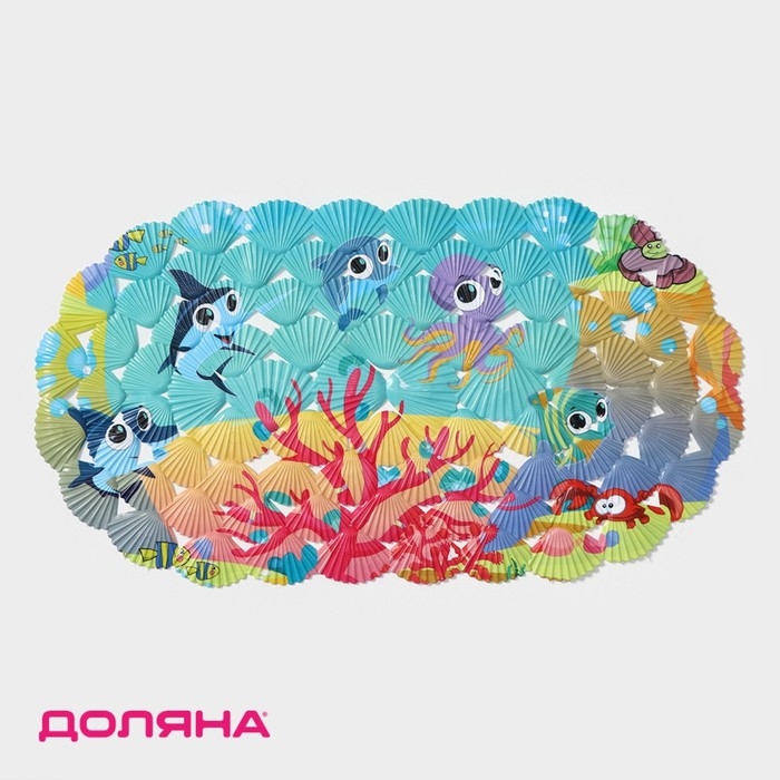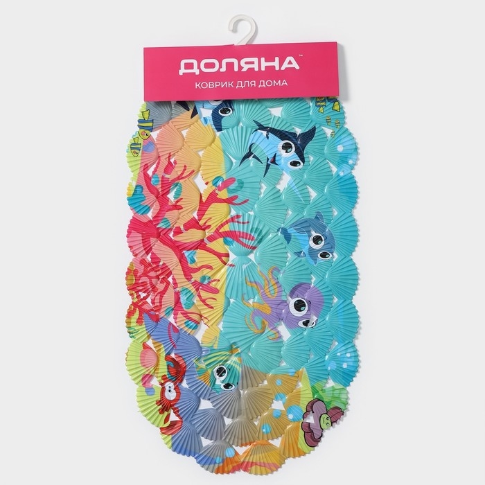 Коврик противоскользящий в ванну на присосках Доляна «На дне океана», 37×67 см