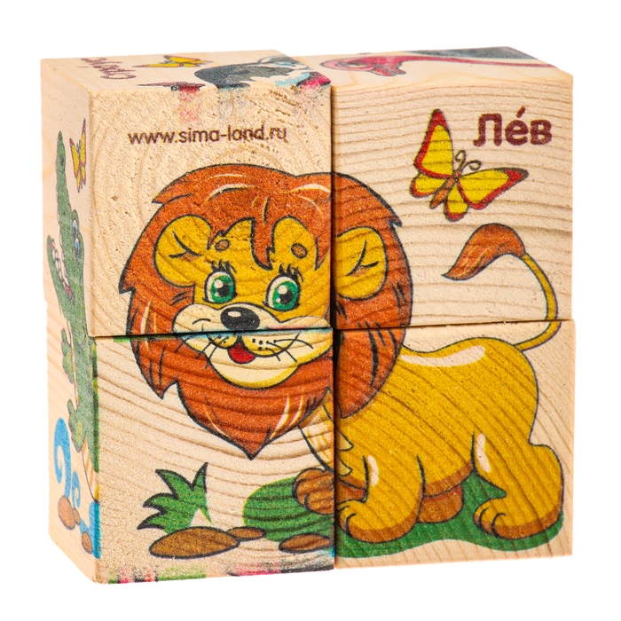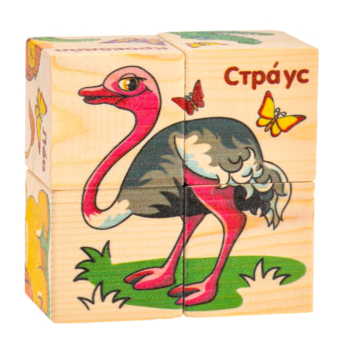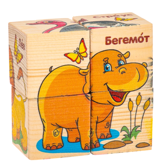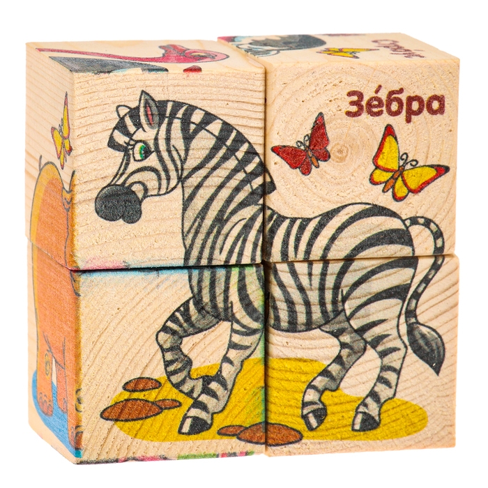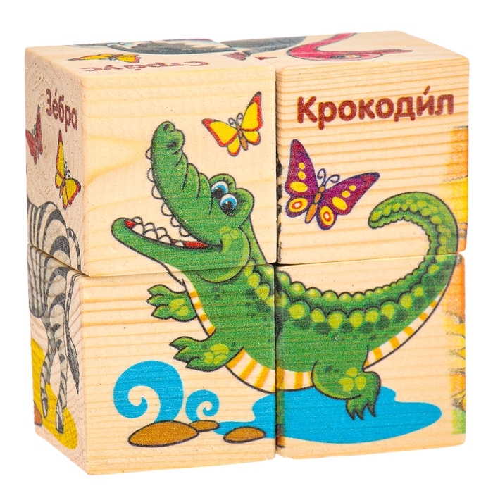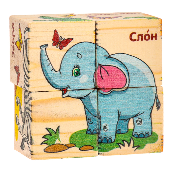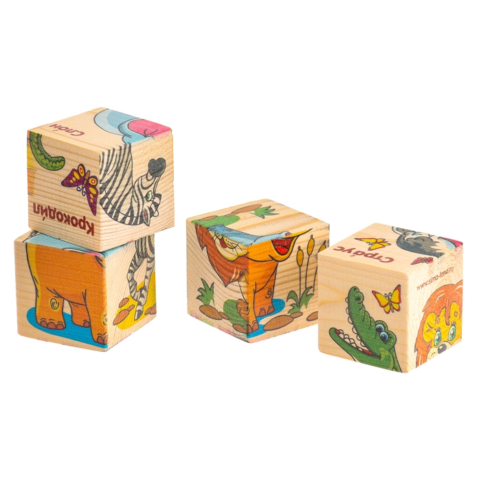 Кубики деревянные «Животные Африки», набор 4 шт.