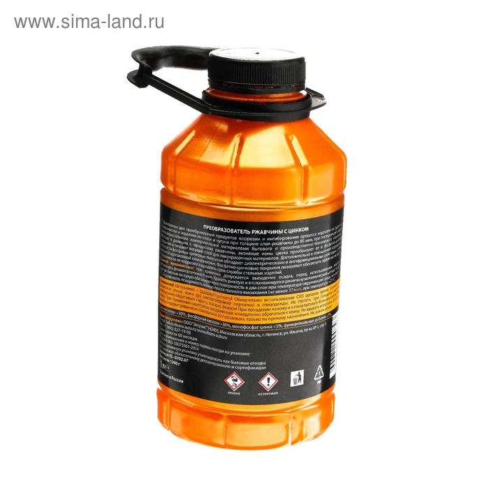 Предназначен для преобразования продуктов коррозии и ингибирования процесса коррозии на различных поверхностях и изделиях из стали и чугуна при толщине слоя ржавчины до 80 мкм, при последующей окраске атмосферостойкими лакокрасочными материалами бытового и производственно-технического назначения. Вступает в реакцию с продуктами ржавчины, модифицирует их и превращает в несущий слой для лакокрасочных материалов. Наличие в составе активных ионов цинка позволяет обеспечить дополнительную защиту поверхности и продлить срок службы стальных изделий.