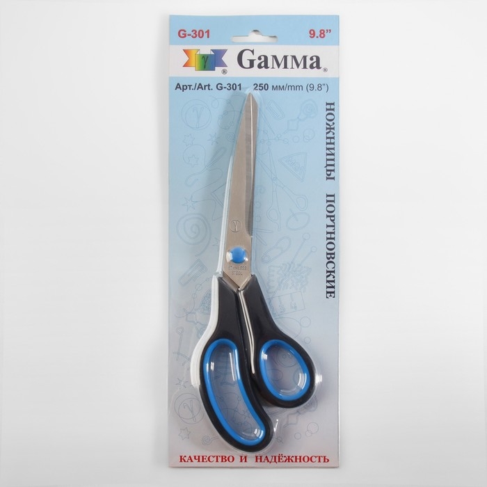 Ножницы портновские, скошенное лезвие, термостойкие ручки, 9,8'', 25 см, цвет чёрный/голубой