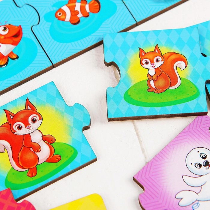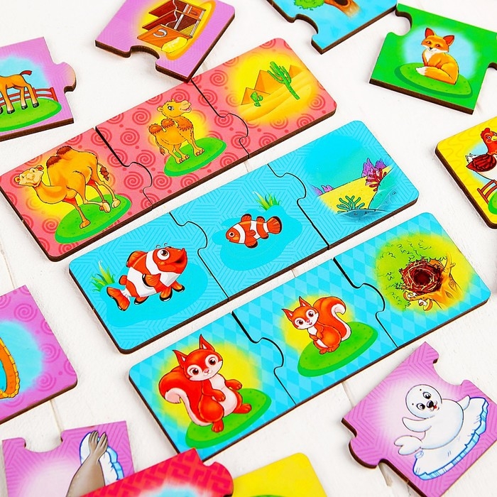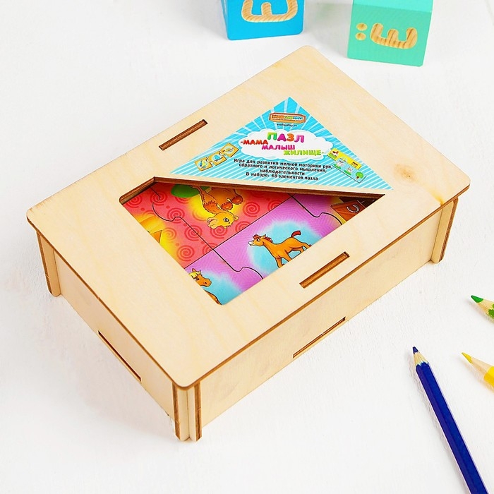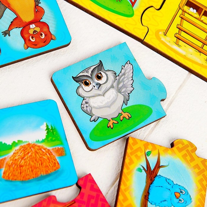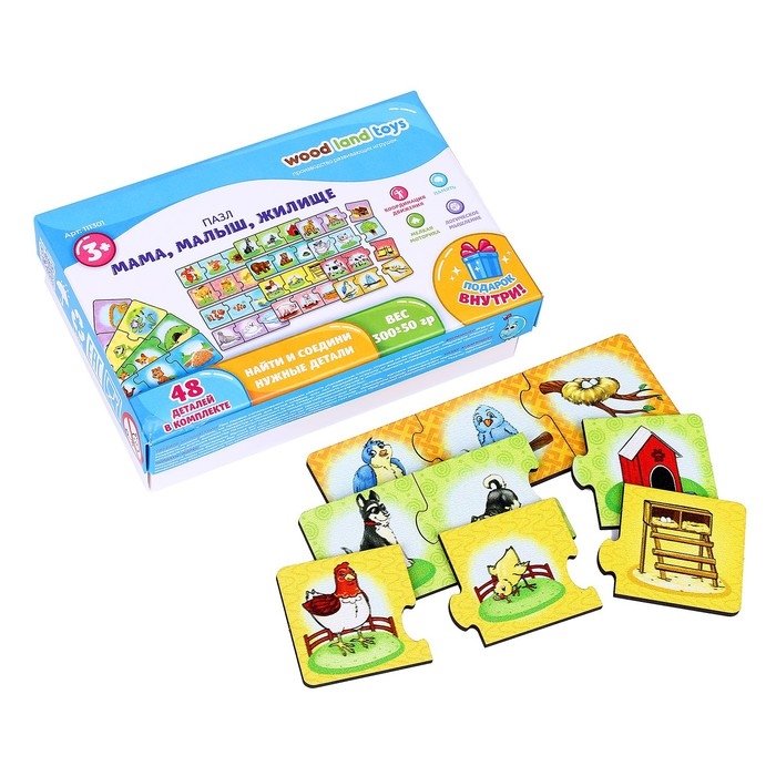 Набор»Мама, малыш, жилище», (пазл-тройной), элемент 5,5 × 5,5 см, 16 мини-пазлов