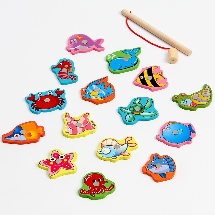 Рыбалка — это популярная развивающая игрушка, которая позволит малышу увлекательно и с пользой провести время. Поймать яркую добычу не так легко, как кажется! Кроха должен продемонстрировать навыки концентрации внимания, пространственное мышление и хорошую координацию движений, чтобы совместить удочку и фигурку.