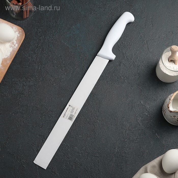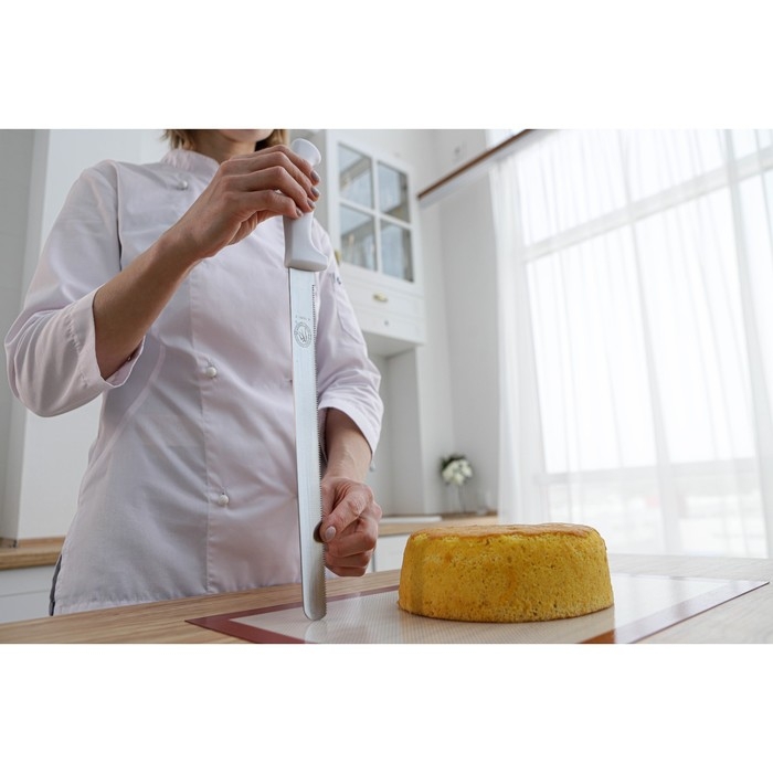 Нож для бисквита, мелкие зубчики, ручка пластик, рабочая поверхность 29,5 см, толщина лезвия 1,9 мм, цвет белый