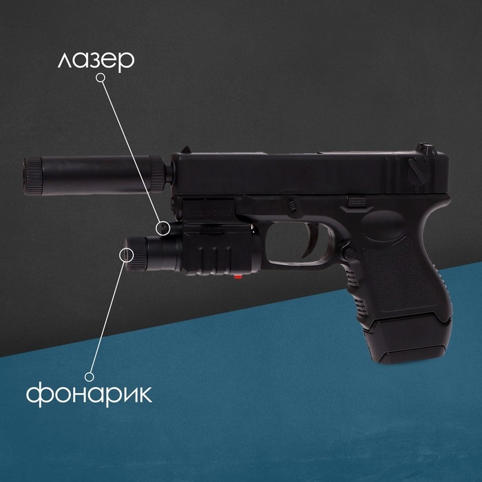 Детское оружие Пистолет пневматический детский «Форт», с фонариком, лазером и глушителем