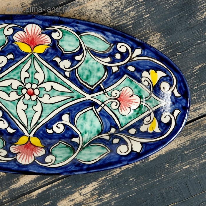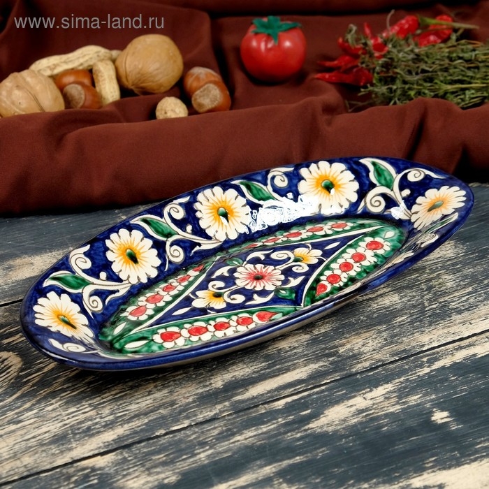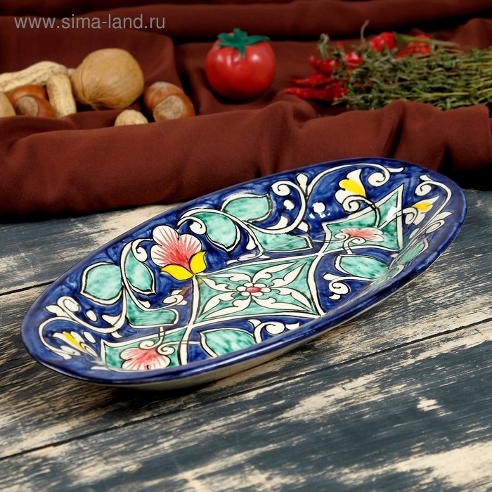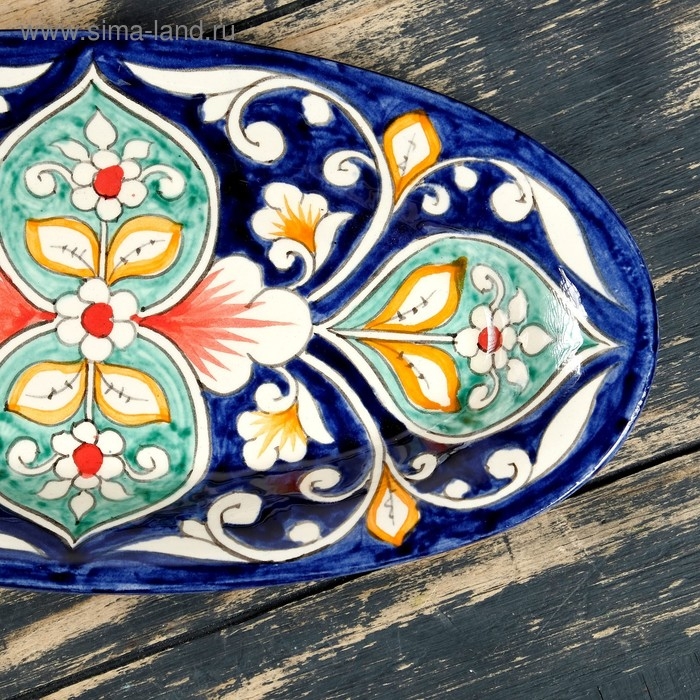 Селедочница Риштанская Керамика "Узоры", 34 см, разноцветное, овальное