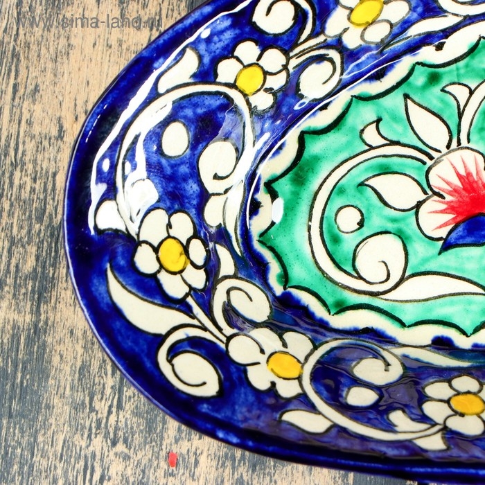 Селёдочница Риштанская Керамика "Цветы", 24 см, синяя, микс