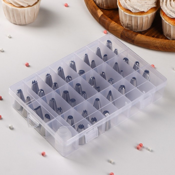 Набор насадок кондитерских, 42 шт, d=1,7 см, адаптер, в кейсе, насадки МИКС