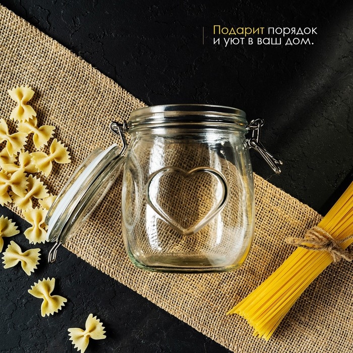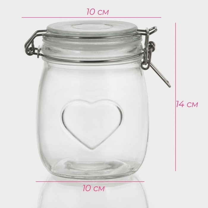 Банка стеклянная для хранения сыпучих продуктов Доляна «Сердце», 850 мл, 11×14 см, с бугельным замком