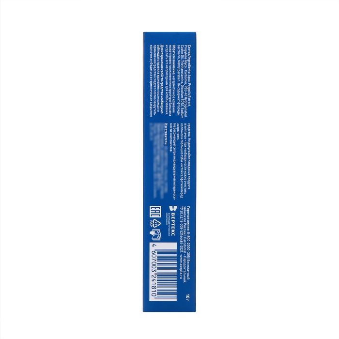 Вспомогательные вещеста: вода, пропиленгликоль, карбомер, ПЭГ-40 гидрогенизированное касторовое масло, триэтаноламин, динатрия эдетат, натрия сахаринат, метилпарабен.