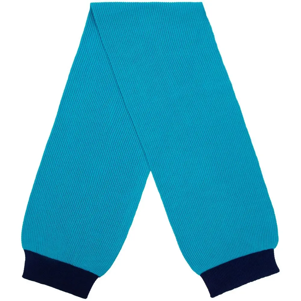 Двухслойный шарф фактурной вязки с контрастной отделкой.