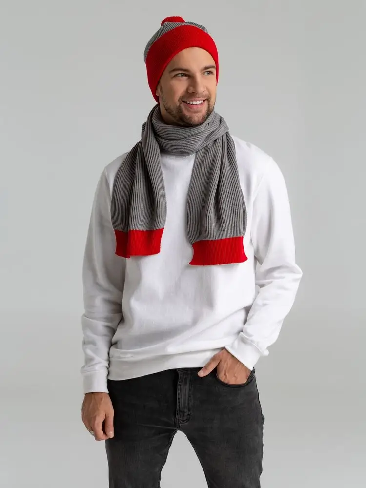 Шарф Snappy, светло-серый с красным