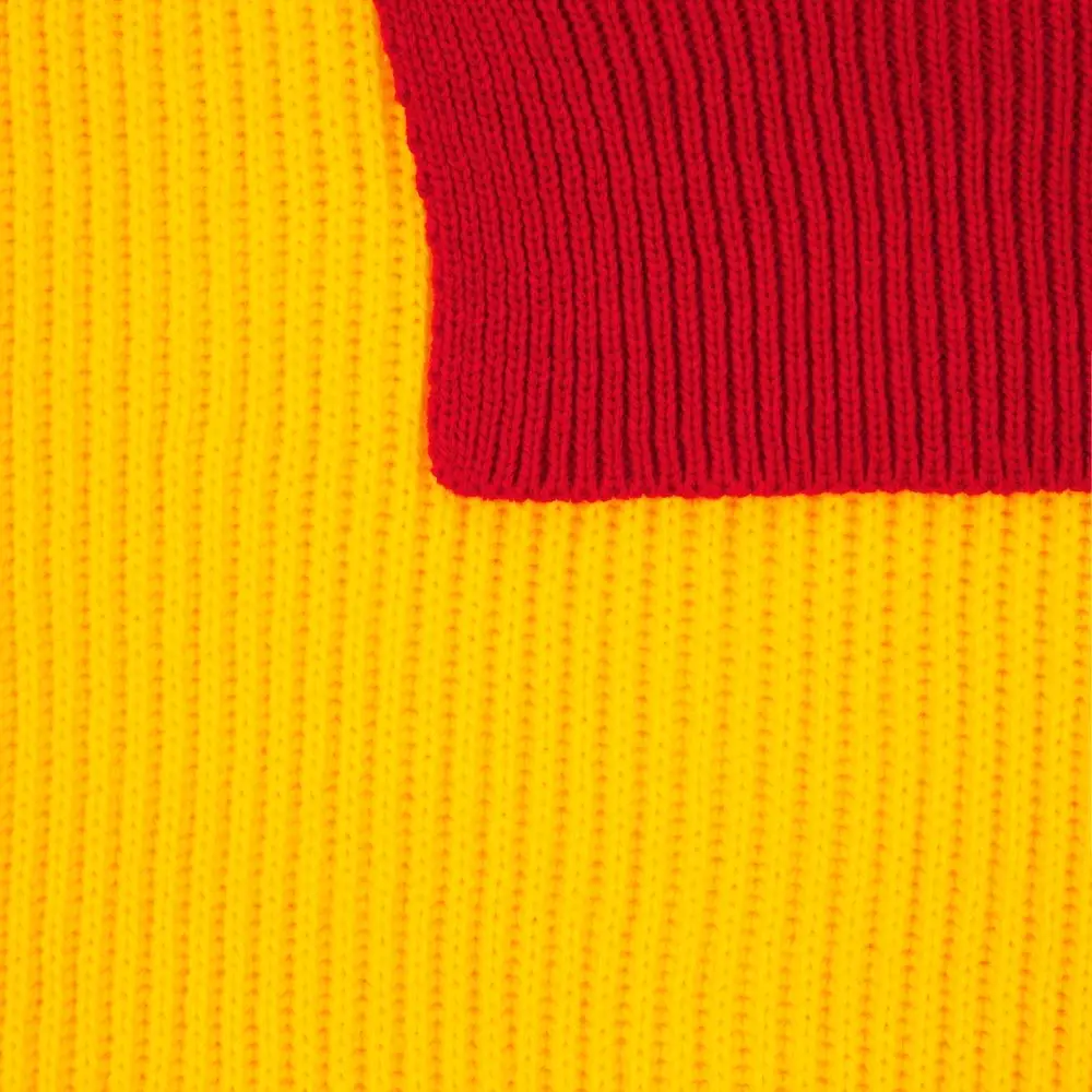 Двухслойный шарф фактурной вязки с контрастной отделкой.