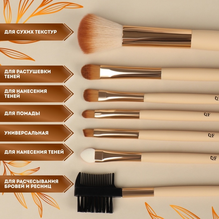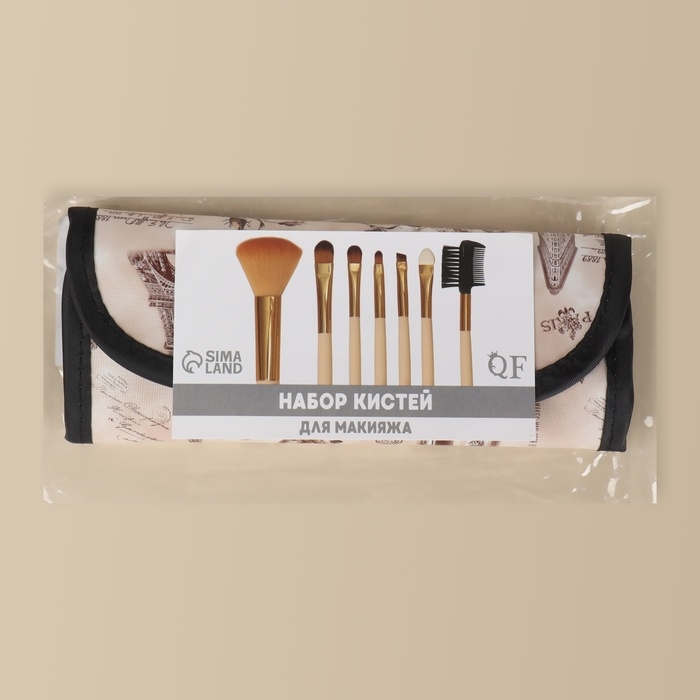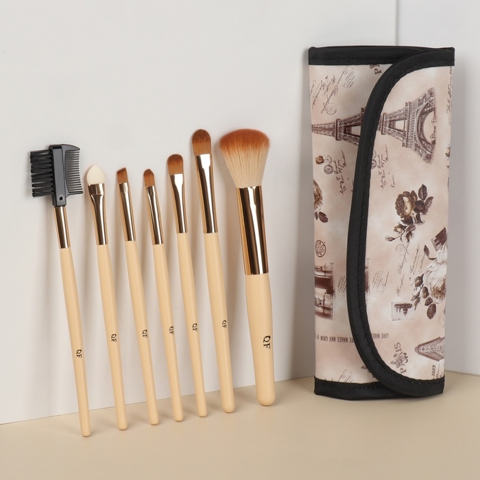 Набор кистей для макияжа «Франция», 7 предметов, чехол на кнопке, цвет бежевый/коричневый