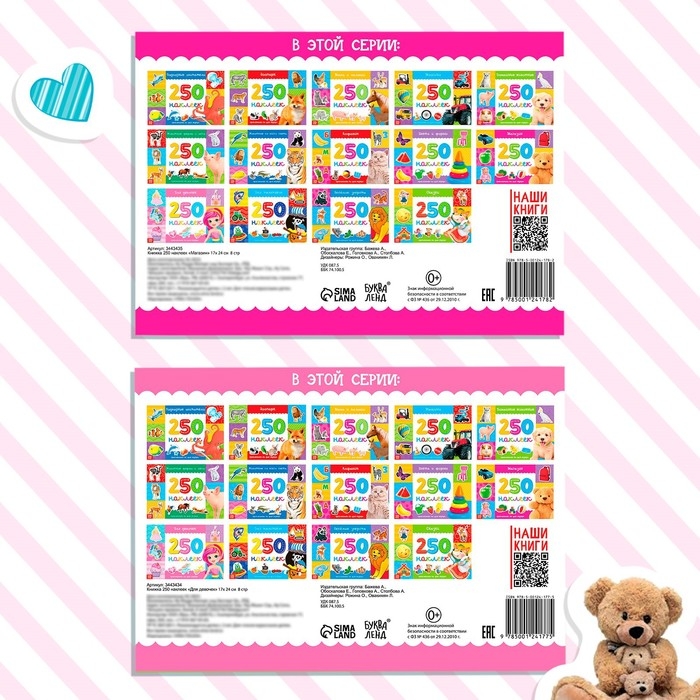 250 наклеек набор «Для девочек», 2 шт. по 8 стр.