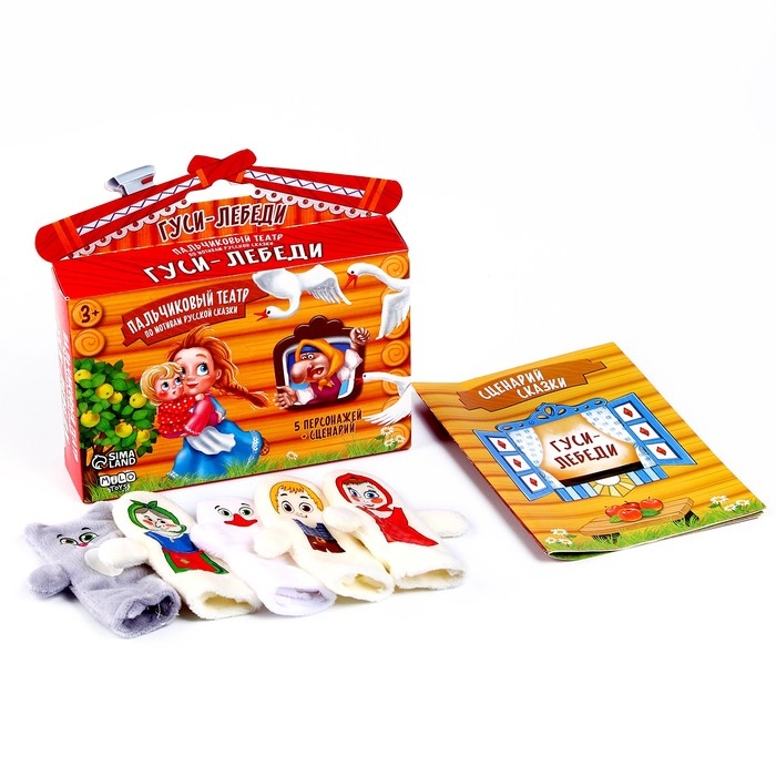 Пальчиковый театр «Гуси-лебеди», набор: 5 персонажей, сценарий