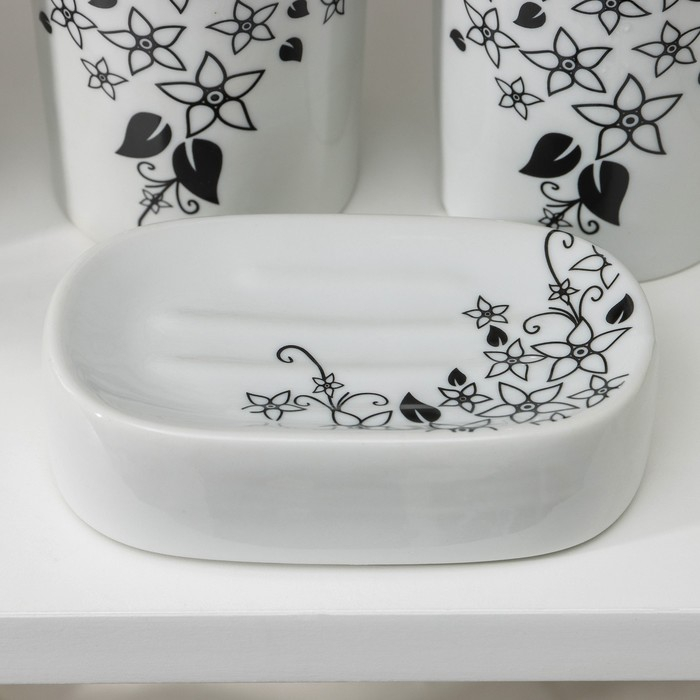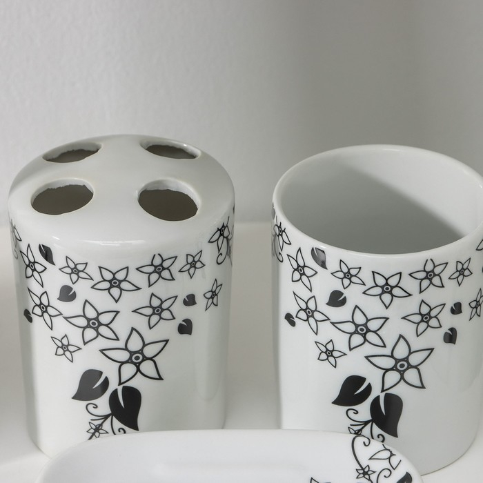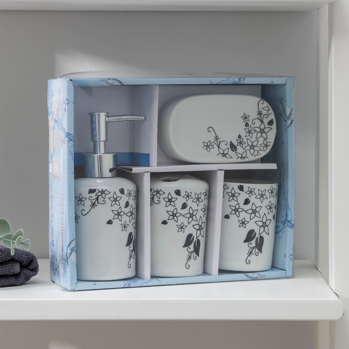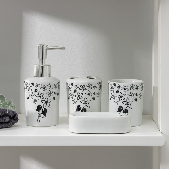 Набор для ванной, 4 предмета (мыльница, дозатор для мыла, 2 стакана), цвет белый
