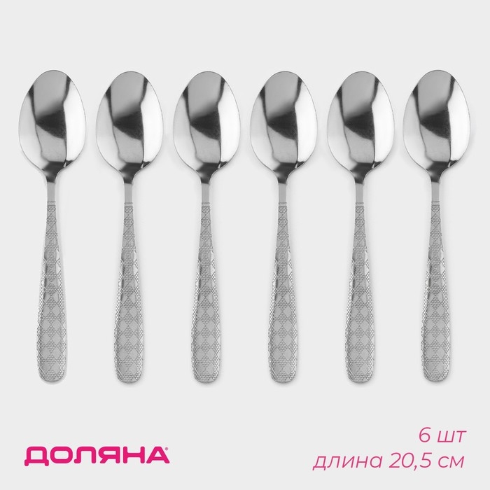 Набор столовых ложек из нержавеющей стали Доляна «Ромб», длина 20,5 см, 6 шт, цвет серебряный