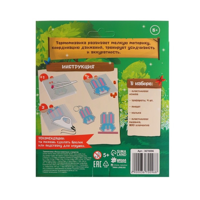 Термомозаика «Лесные животные» с пинцетом