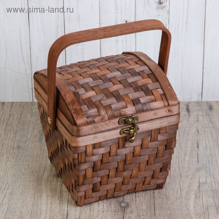 Сундук «Плетёнка», с замком, 16×16×25 см, шпон