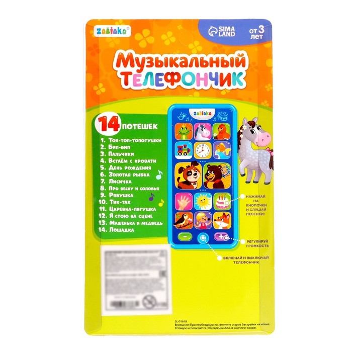 Музыкальный телефон «Потешки для малыша», звуковые эффекты, работает от батареек
