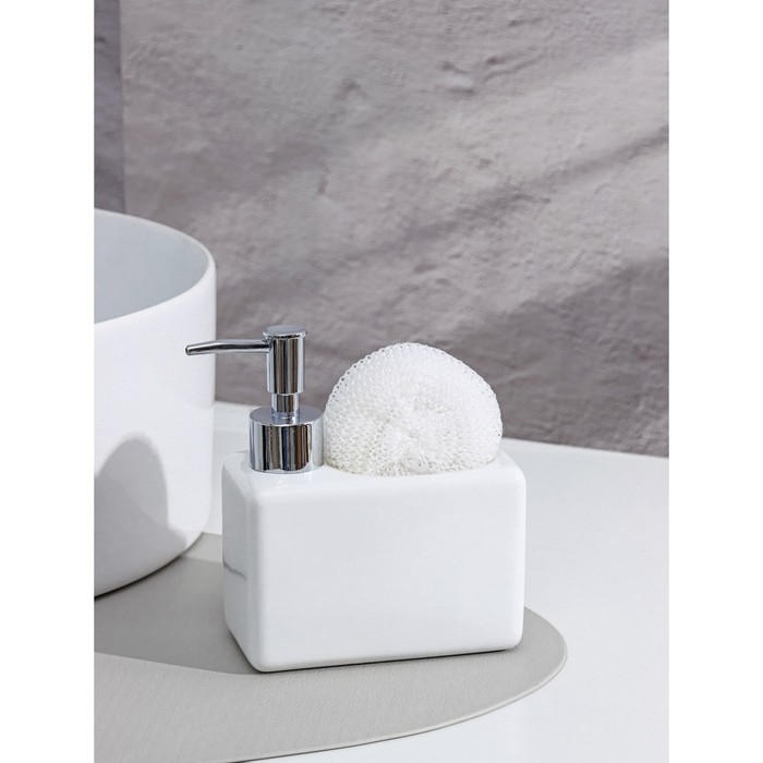Дозатор для моющего средства с подставкой для губки Raccoon, 550 мл, губка в комплекте, цвет белый