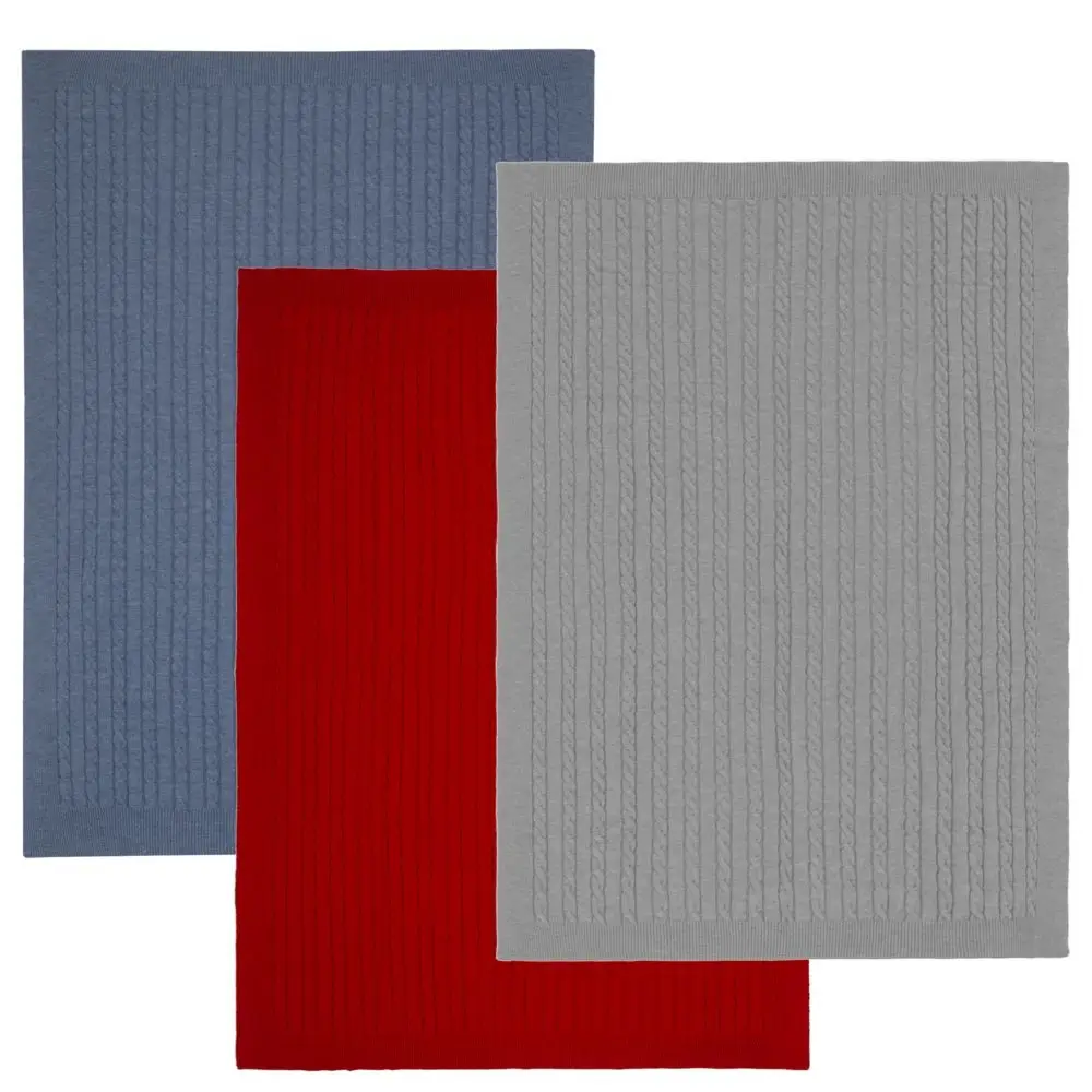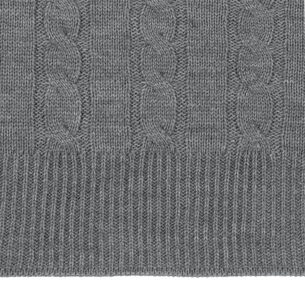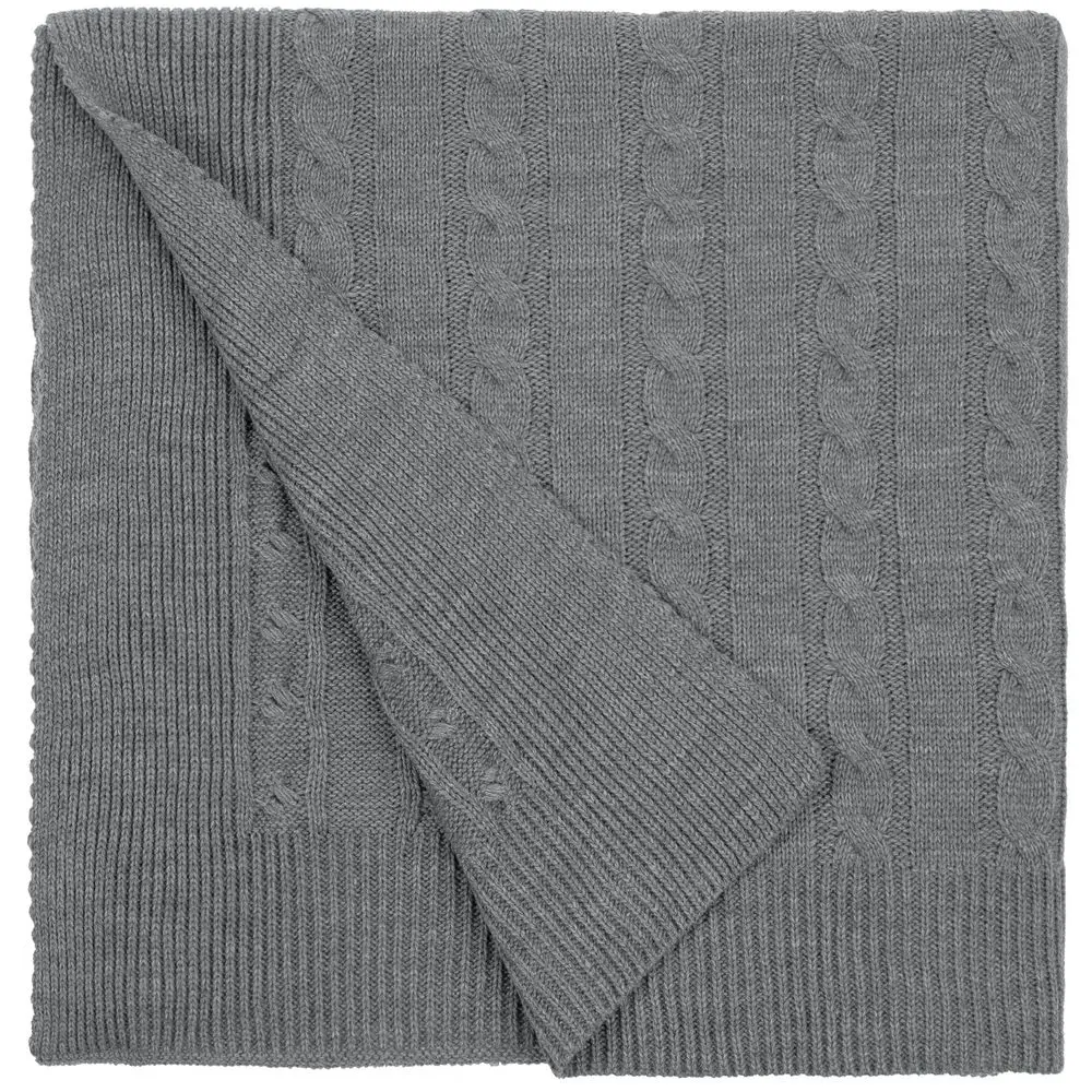Модель: однотонный плед с фактурной вязкой, которая позволяет сделать его воздушным и объемным. Чередуя различные типы петель на гладком полотне, можно вывязать любую графику — логотип, текст, товарный знак.