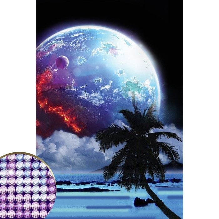 Часть изображения предстоит заполнить стразами, другая часть напечатана на холсте-основе. Поэтому набор подойдёт для тех, кто впервые пробует свои силы в этой технике или любит быстро добиваться результата.