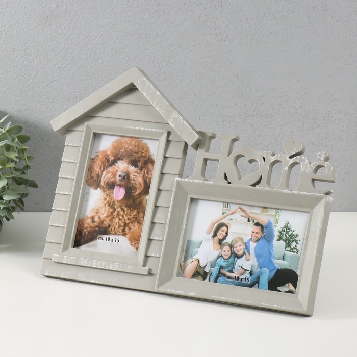 Фоторамка пластик на 2 фото 10х15 см "Домик" серая 25х35х2 см