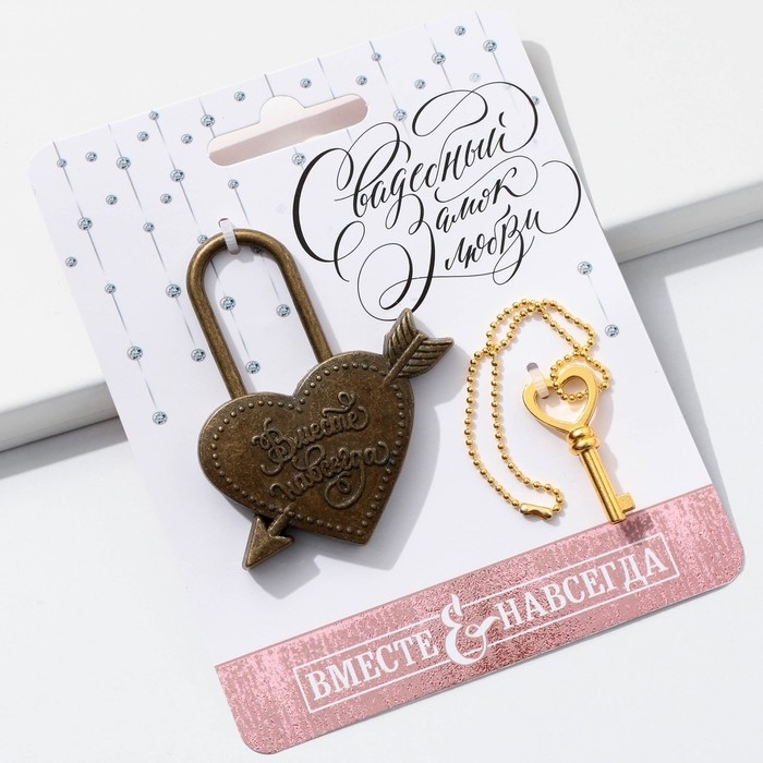 Замок для торжественной свадебной традиции - это символ любви. Навесной замок любви на свадьбе становится символом нерушимого союза, заключенного влюбленными в этот день. По традиции замок вешается на мост, загадывается желание о счастливой семейной жизни, а ключи от него выбрасываются в реку, через левое плечо. Это делается для того, чтобы никто никогда не смог открыть этот замок и нарушить клятву, данную влюбленными. Свадебный замок можно повесить на мост по традиции или на дерево в специалных парках или аллеях молодожен, которые есть во многих городах. Замок навесной свадебный имеет в комплекте ключик, замок закрывается и открывается. Традиция закрывать замок на свадьбу объединяет сердца мужа и жены навсегда. Свадебный декоративный замочек будет отлично смотреться на фотосессии и видео.