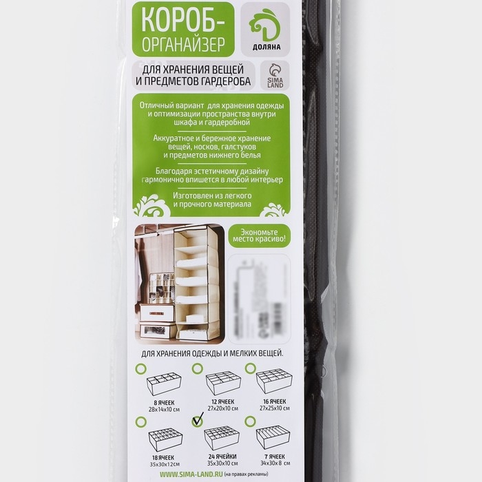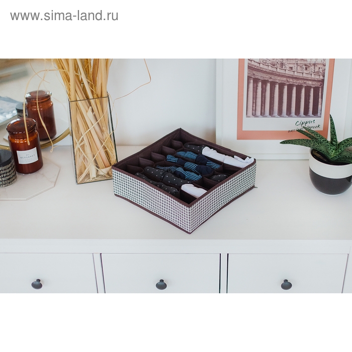 Органайзер для хранения белья Доляна «Вилли», 24 ячейки, 35×30×10 см, цвет бело-коричневый