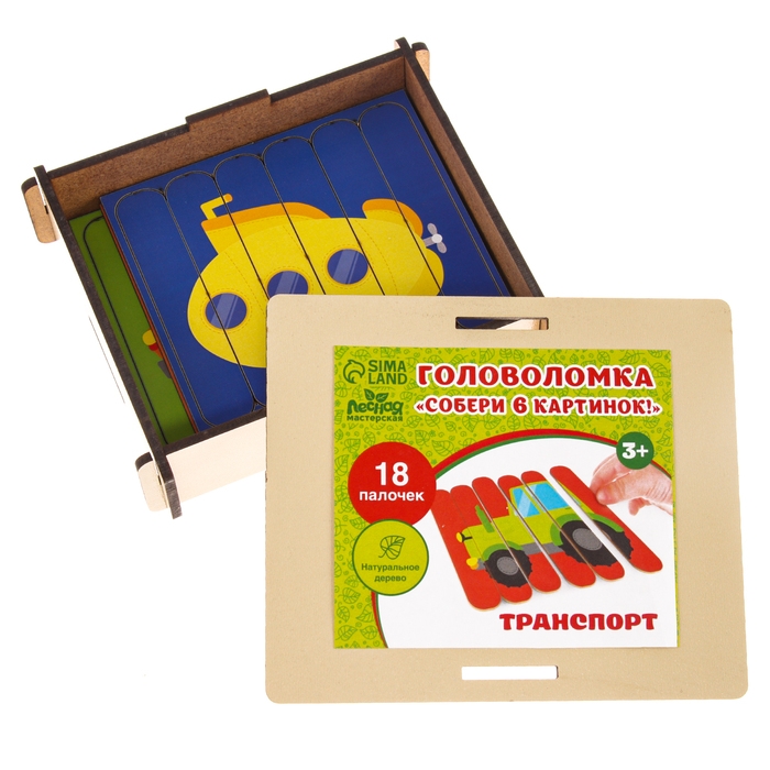 Головоломка. Собери 6 картинок «Транспорт», двусторонние палочки