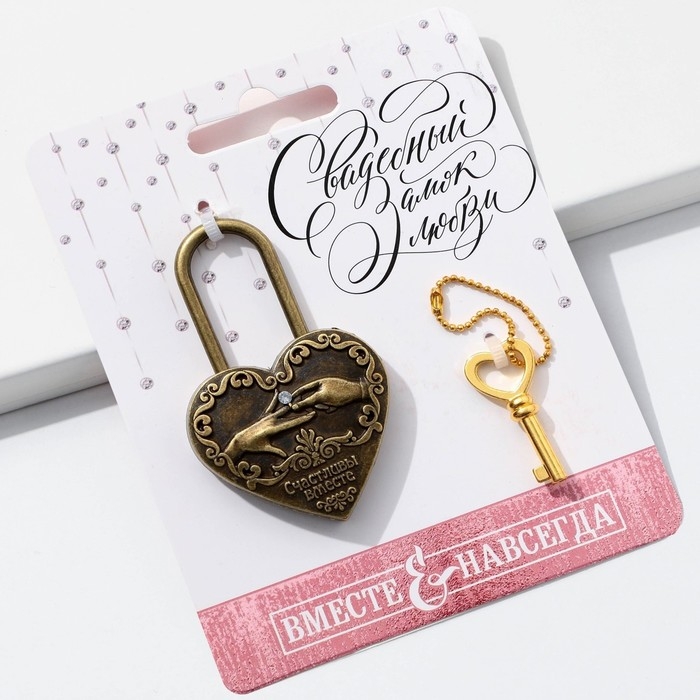 Замок для торжественной свадебной традиции - это символ любви. Навесной замок любви на свадьбе становится символом нерушимого союза, заключенного влюбленными в этот день. По традиции замок вешается на мост, загадывается желание о счастливой семейной жизни, а ключи от него выбрасываются в реку, через левое плечо. Это делается для того, чтобы никто никогда не смог открыть этот замок и нарушить клятву, данную влюбленными. Свадебный замок можно повесить на мост по традиции или на дерево в специалных парках или аллеях молодожен, которые есть во многих городах. Замок навесной свадебный имеет в комплекте ключик, замок закрывается и открывается. Традиция закрывать замок на свадьбу объединяет сердца мужа и жены навсегда. Свадебный декоративный замочек будет отлично смотреться на фотосессии и видео.