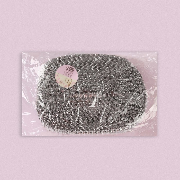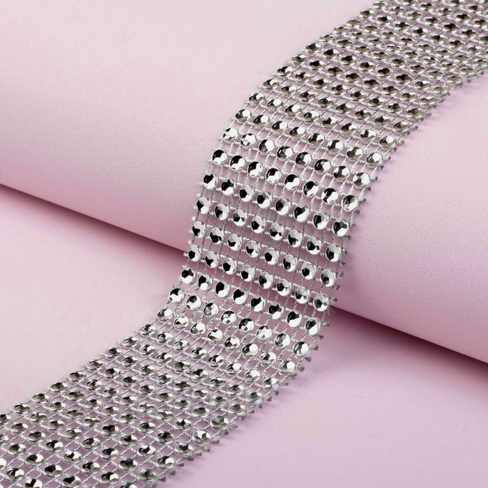 Лента с имитацией страз, 4 см, 9 ± 1 м, цвет серебряный