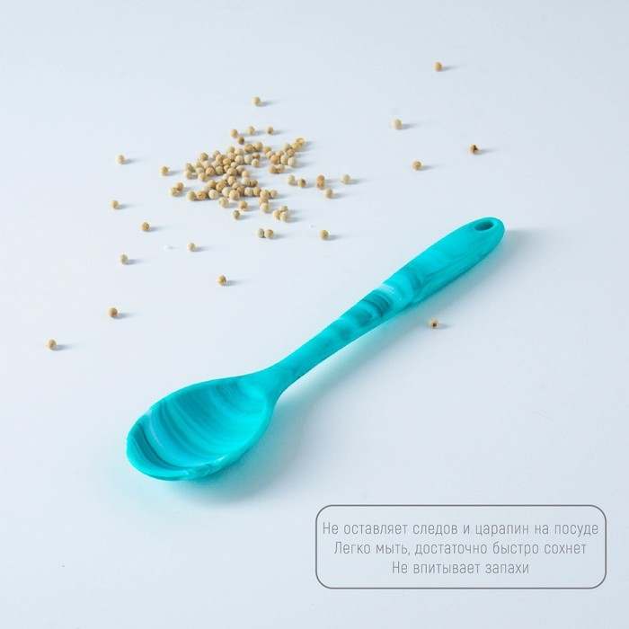 - Ложка выполнена из силикона, который не оставляет царапин на поверхности антипригарной посуды.