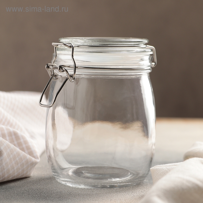 Банка стеклянная для хранения сыпучих продуктов Доляна «Оптима», 900 мл, 10,5×13,5 см, с бугельным замком