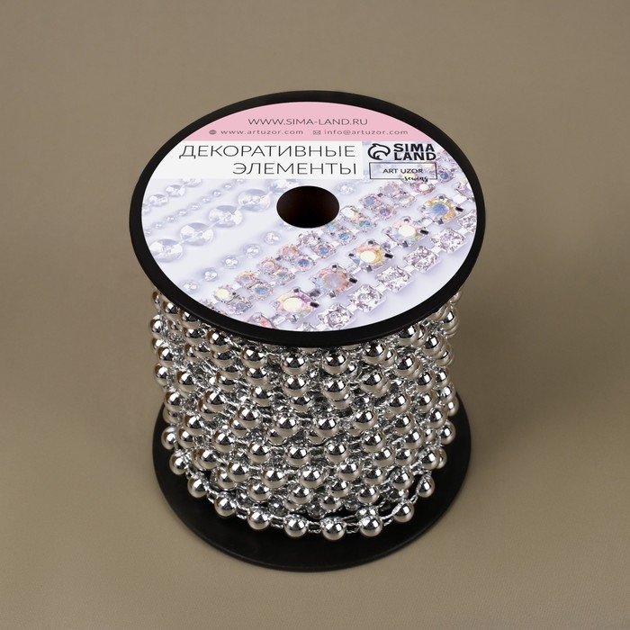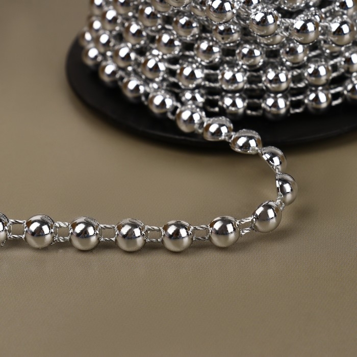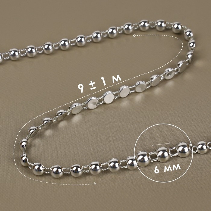 Бусы на нитях, плоские, 6 мм, 9 ± 1 м, цвет серебряный