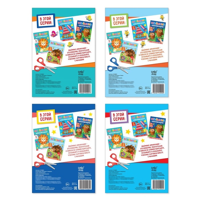 Набор «Для маленьких ручек» — 4 познавательные книжки и множество различных объёмных аппликаций. Любимые зверята и птички, рыбки и цветы, ягоды и фрукты, космические ракеты и корабли ждут вас. В каждой книге представлен комплект деталей для изготовления 4 аппликаций. В сборниках подробно описаны правила их создания. Для удобства в книге есть условные обозначения необходимых действий: вырезать, согнуть, завить ножницами, нанести клей.