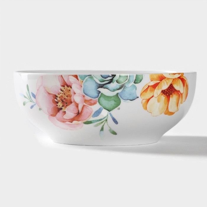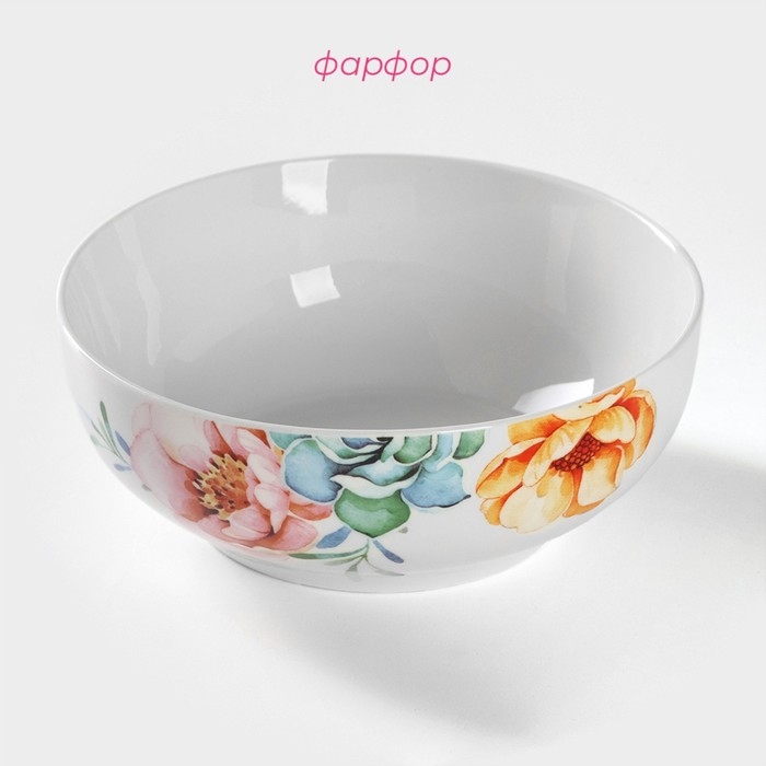 Салатник фарфоровый Доляна «Пташка» 600 мл, d=15,2 см, цвет белый