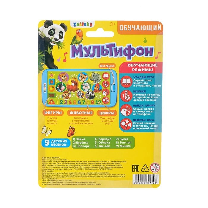 Включив телефончик, малыш сможет послушать весёлые песенки, изучить цифры, геометрические фигуры, цвета и познакомится с животными, услышит их голоса. Такие дополнительные функции будут не только развлекать, но и обучать.