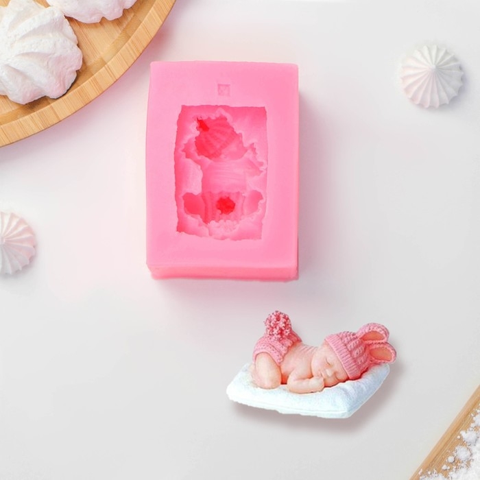 Молд Доляна «Сонный ребёнок», силикон, 9×6 см, цвет розовый