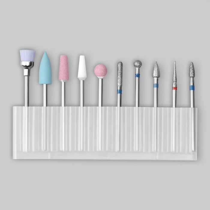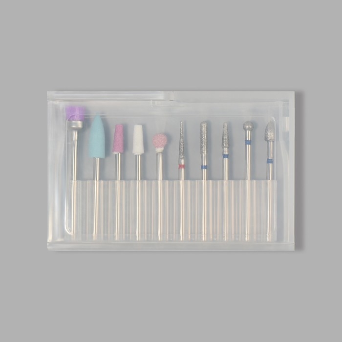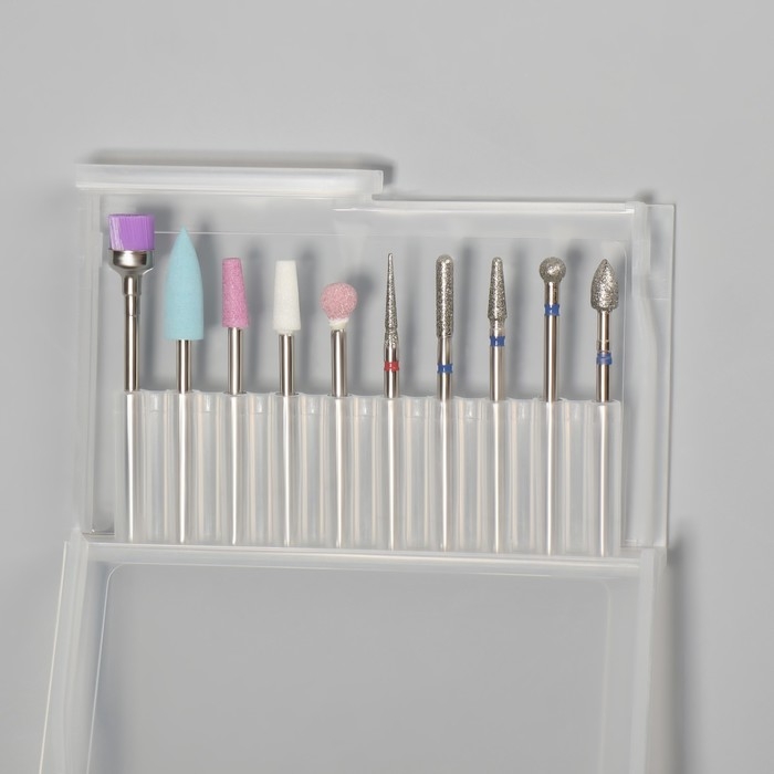 Фрезы для маникюра в пластиковом органайзере, 10 шт