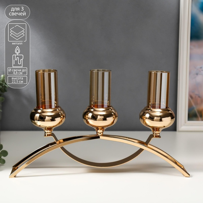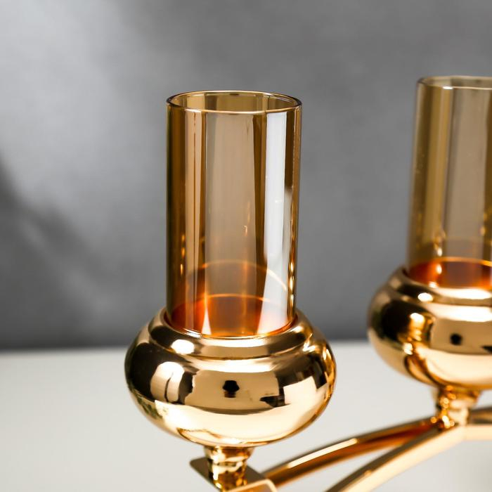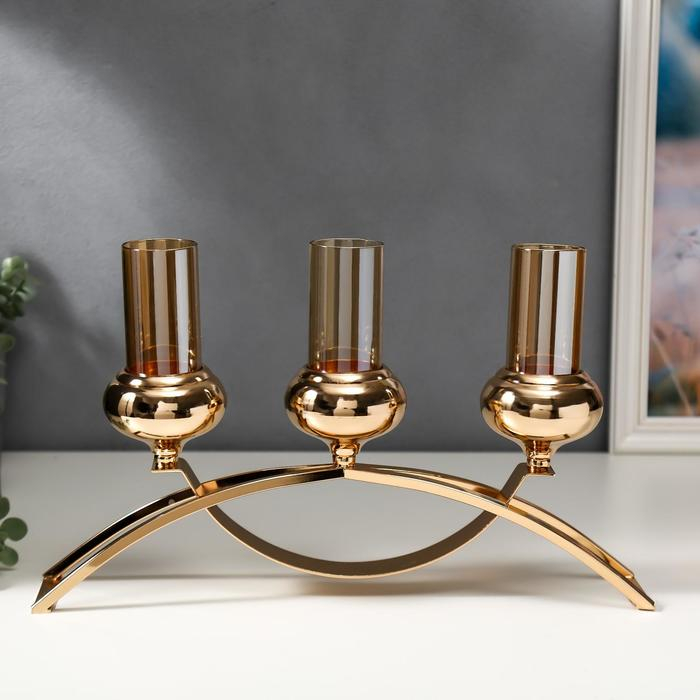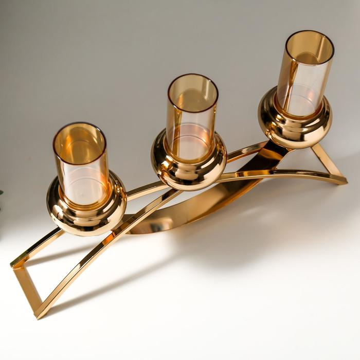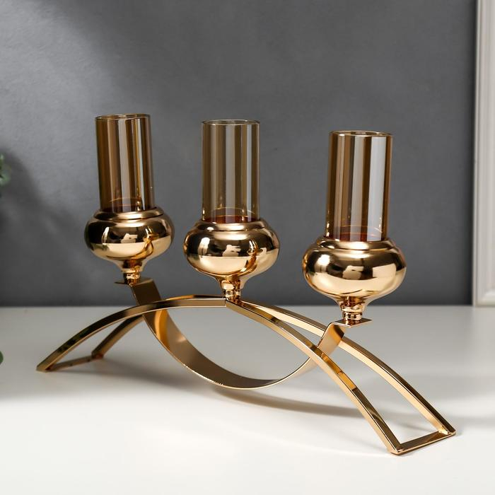 Подсвечник металл, стекло на 3 свечи "Зеркало души" золото 22,5х41,5х8,5 см